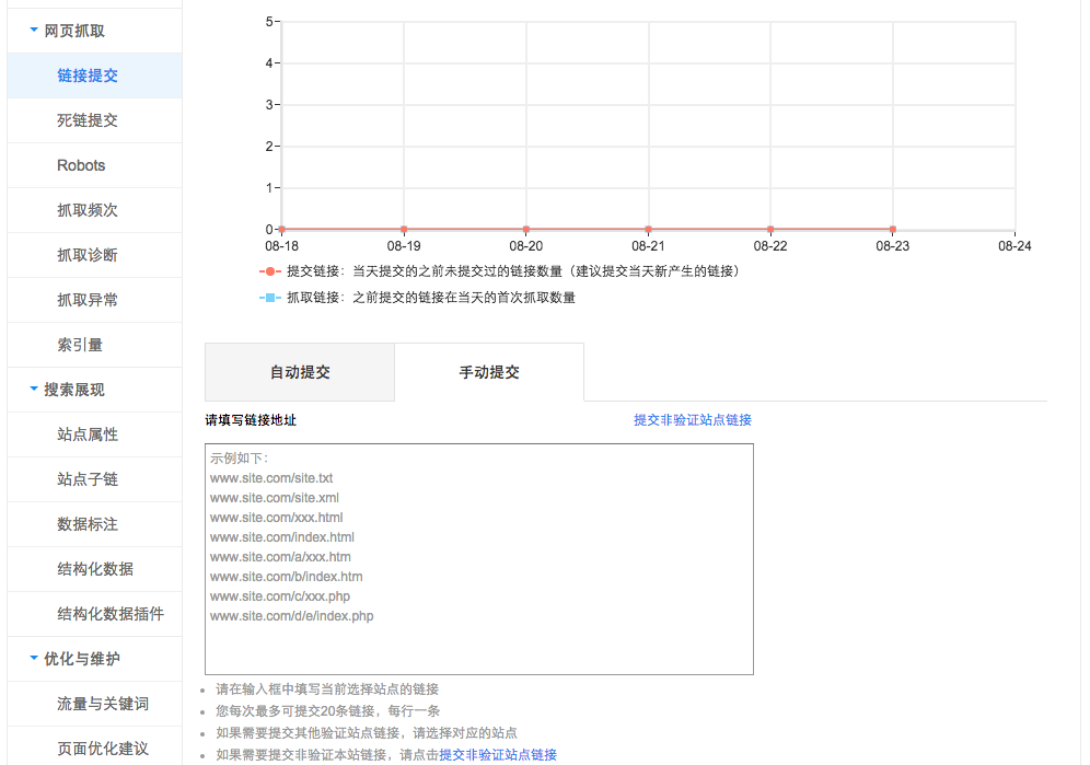 There is also a tool for submission of pages for deindexing (死链提交). I'll call this the page-dumping tool. This is clearly a very important one, as they permit submissions of sitemap URLs (ending in txt or xml), though generally not from new users.