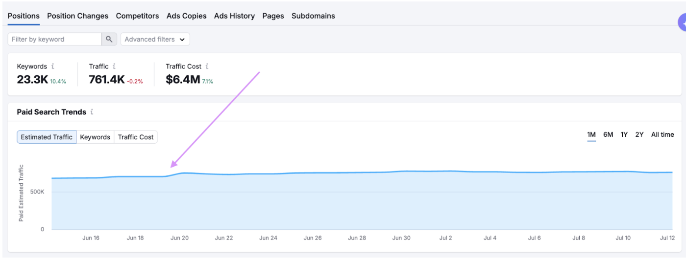Here’s an Advertising Research report showing changes in paid search traffic: