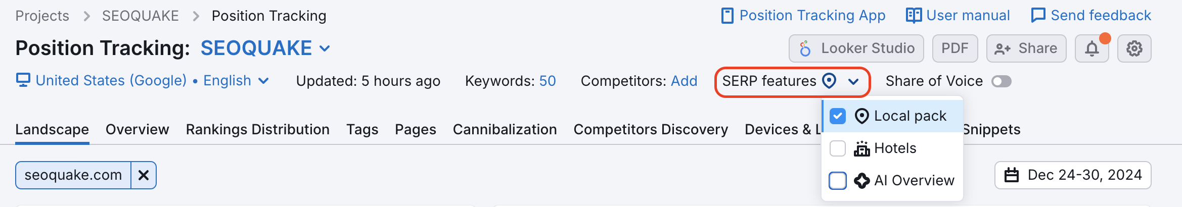 If you do follow Local pack results in your Position tracking campaign, do not forget to enter the Business name in the Local pack settings of the report.
